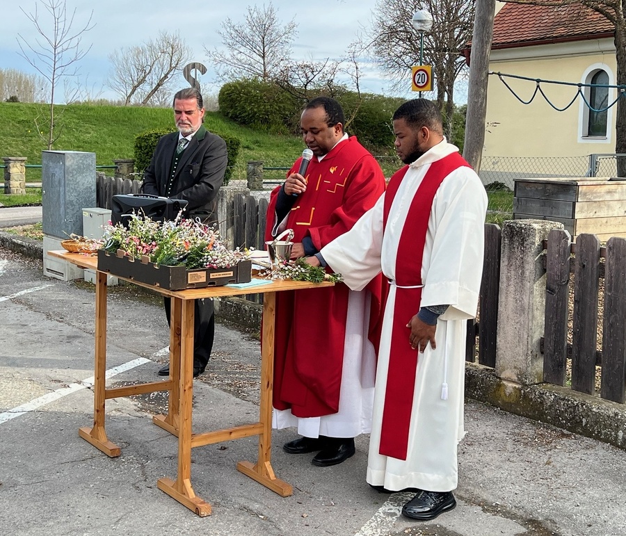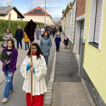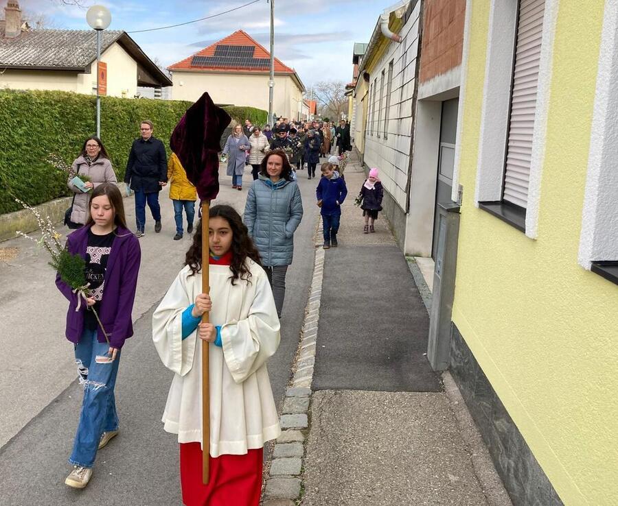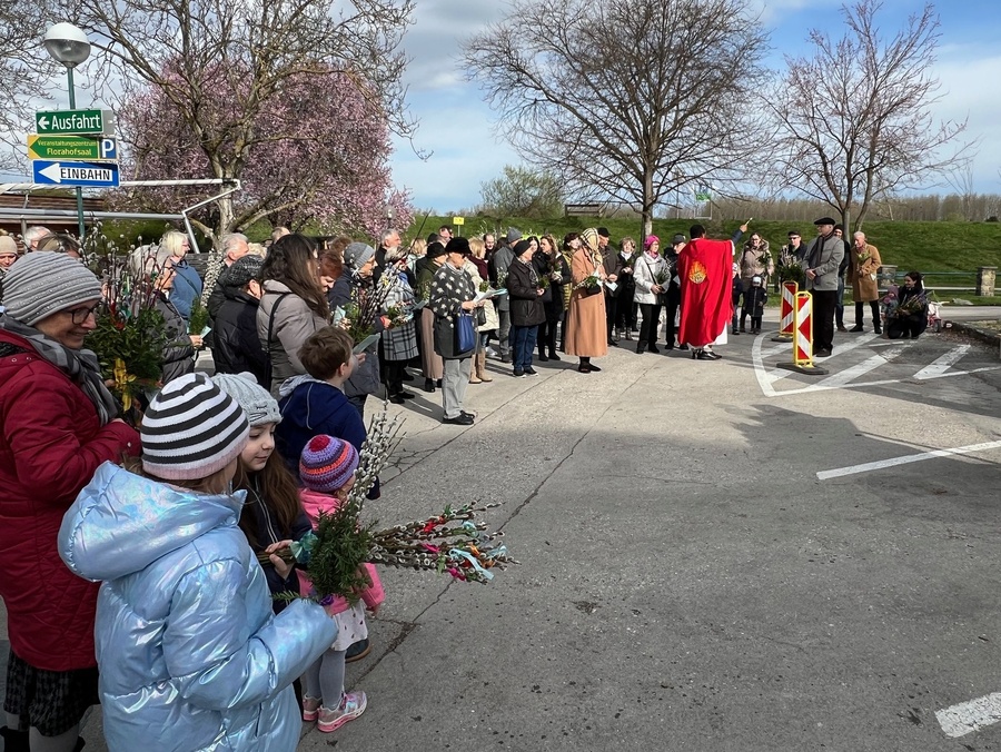 Am 24. März startete um 08:30 Uhr die Palmsonntagsprozession bei der Donaukapelle Langenlebarn. Nach einer feierlichen Segnung von Pater Pius zogen die versammelten Gläubigen zur Kirche wo anschließend die Messe gefeiert wurde.