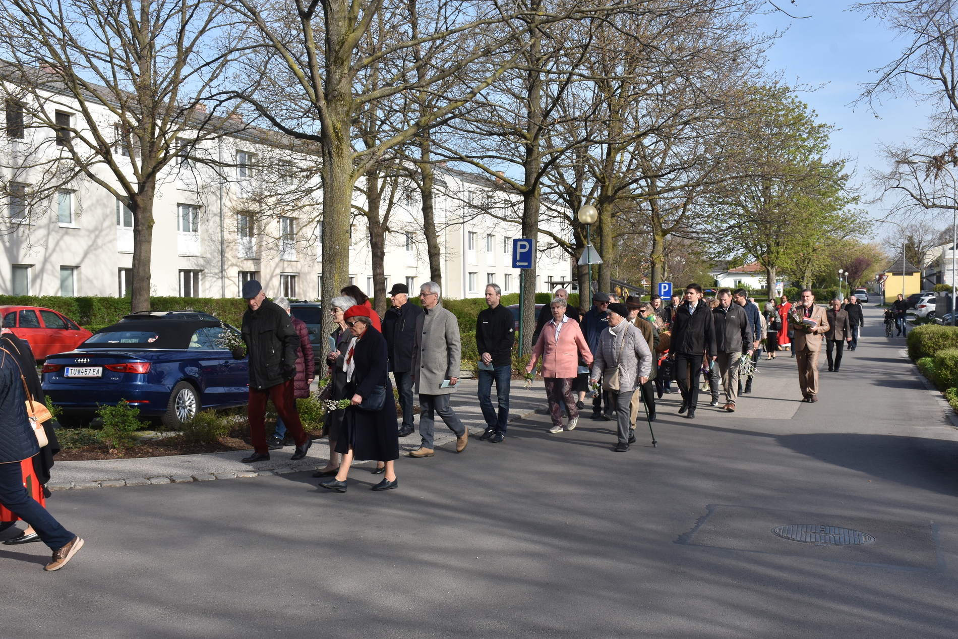 Pater Pius erklärt: "Mit Palmzweigen in den Händen und „Hosanna“-Rufen auf den Lippen begrüßten die Menschen damals Jesus als ihren König. In unsere traditionellen Prozession von der Donaukapelle weg, tragen wir auch heute gesegnete Palmzweige. Wir bringen damit zum Ausdruck, dass Jesus der ist, dem wir folgen wollen. An diesem Sonntag in Freude und in den folgenden Tagen im Leid, das er für uns auf sich genommen hat."