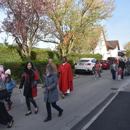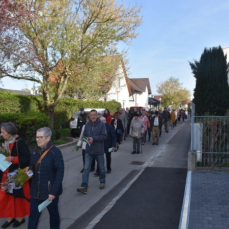 Auch in Langelebarn beginnt die Liturgie traditionell mit der Palmweihe, die bei schönem Wetter von der Donau weg zur Kirche stattfindet. Anschließend zieht die Pfarrgemeinde gemeinsam in die Kirche ein. Das ist ein lebendiges Zeichen unserer Nachfolge als Gläubige. Pater Pius führt weiter aus: "Die Palmzweige, die dabei getragen werden, nehmen viele Gläubige mit nach Hause. Dort sind sie ein sichtbares Zeichen des Glaubens."