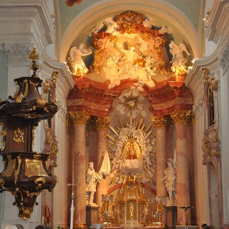 Am späteren Nachmittag führte die Wallfahrt weiter nach Klein Mariazell, einem geschichtsträchtigen Ort mit spiritueller Ausstrahlung. Dort fand eine kleine, aber eindrucksvolle Kirchenführung statt, bei der die Geschichte und die besondere Architektur der Kirche nähergebracht wurden.