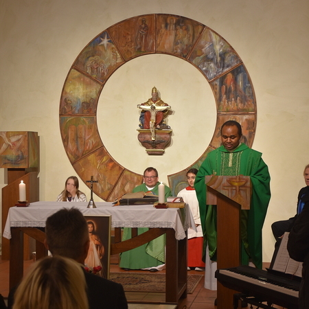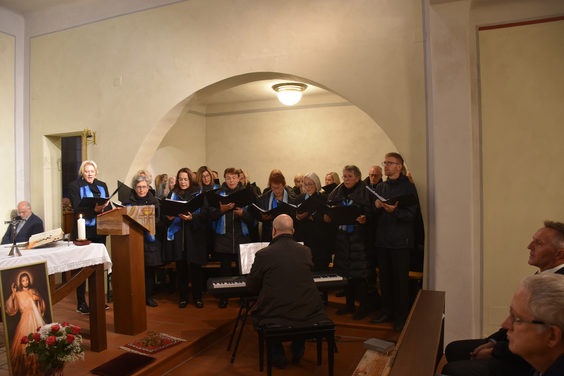 Trotz eines plötzlichen Regenschauers war die Festmesse außerordentlich gut besucht – kein Platz blieb leer. Für die musikalische Gestaltung sorgte der Chor Amici Musici, der mit seinen harmonischen Klängen den feierlichen Charakter der Messe wunderbar unterstrich.