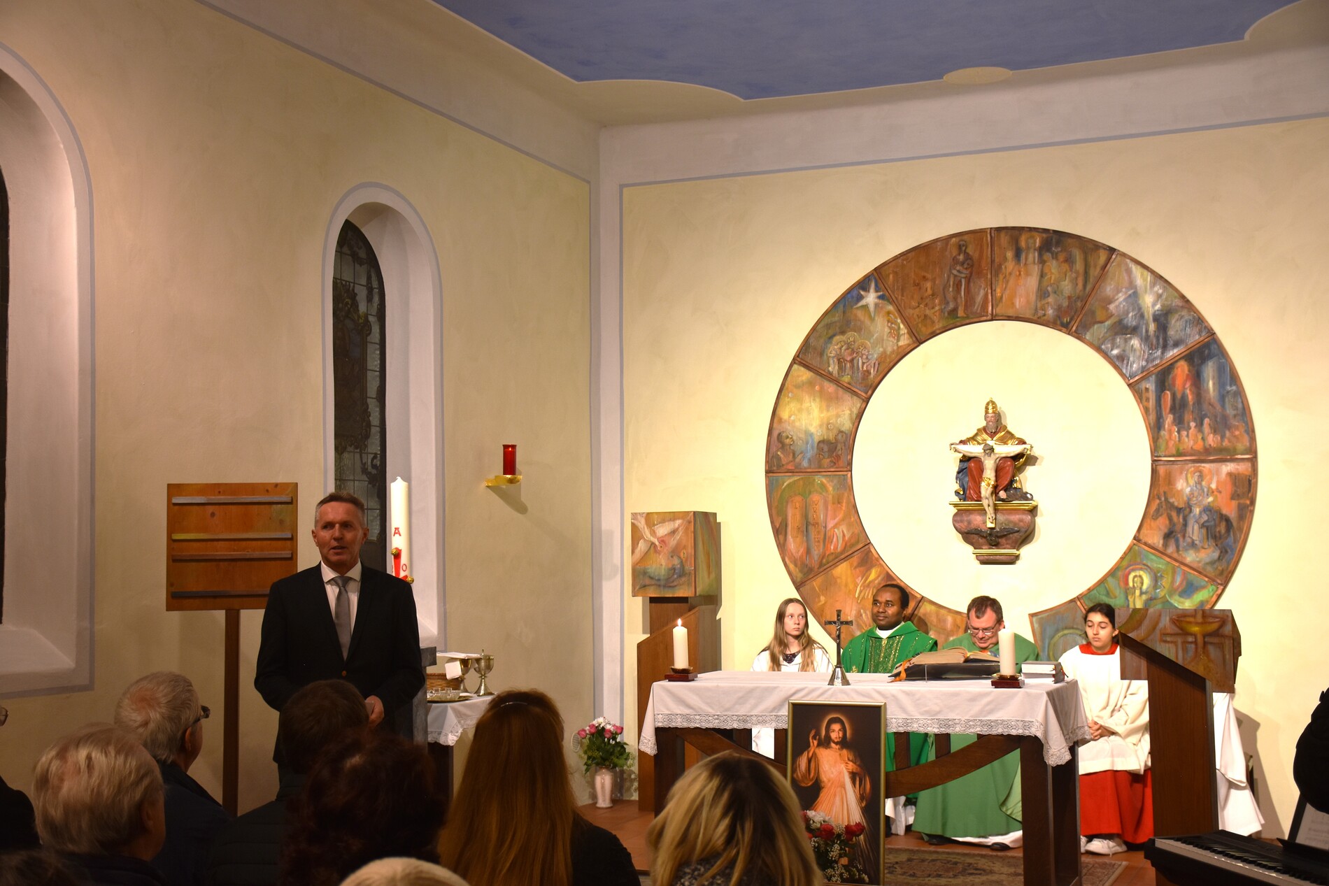 In seiner Predigt betonte Msgr. Heinz, dass bei einer Renovierung für jeden etwas anderes im Vordergrund steht – sei es der Altar, die schönen Fenster, das Altarbild oder die neue Heizung. Doch das wirklich Wesentliche, so der Ordinariatskanzler, seien die Menschen, die die Kapelle besuchen und diesen Ort mit ihren Gebeten, ihrem Glauben und ihrer Gemeinschaft mit Leben erfüllen.