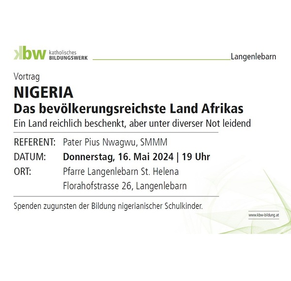 16.05.2024 Vortrag von Pater Pius Nigeria, das bevölkerungsreichste Land Afrikas mehr: Vortrag von Pater Pius