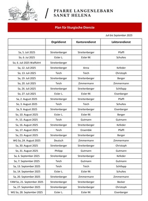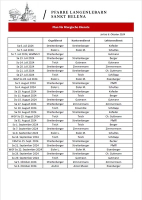 Plan für liturgische Dienste 3. Quartal 2024