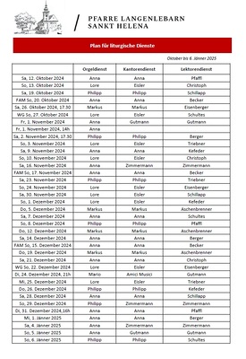 Plan für liturgische Dienste 4. Quartal 2024