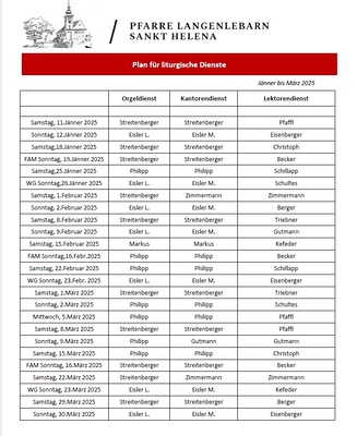 Liturgische Dienste 1. Quartal 2025